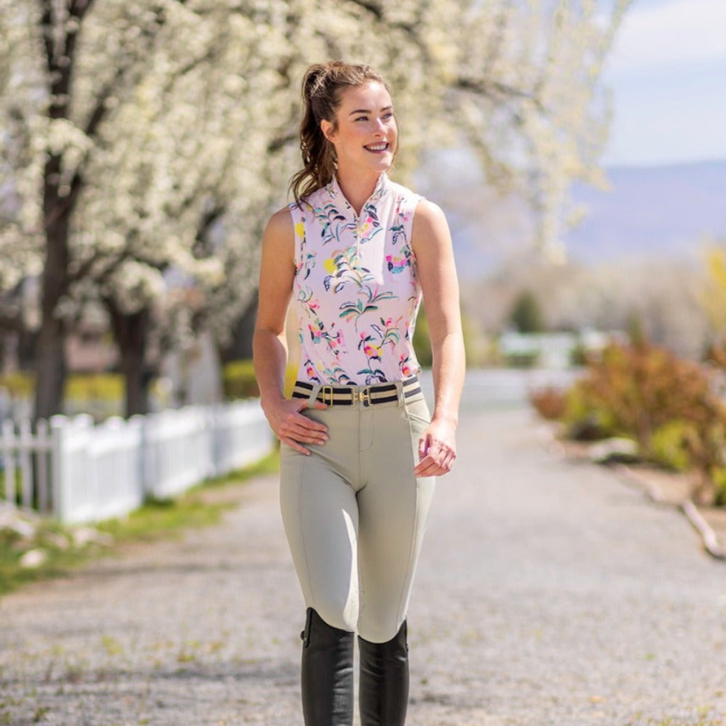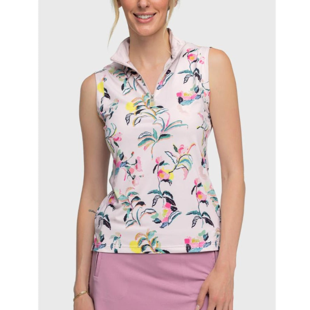 This season’s contemporary floral ¼ zip tank features feminine coral, pink and fuchsia with soft green and sunny yellow. Perfect for the ring, the green, brunch and beyond.   UPF 30, and soft 4-way stretch fabric in a contemporary fit.