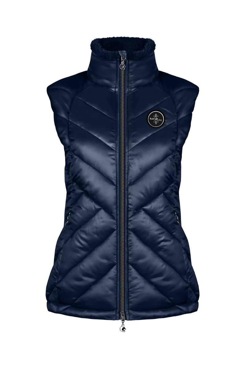 The FairPlay Davina Ladies Riding Vest is thoughtfully crafted for both horseback riding and everyday wear. Its tailored design highlights a feminine silhouette, while the premium outdoor fabric ensures comfort and freedom of movement. Lined with exclusive teddy fabric, it offers exceptional warmth and coziness. Practical features include a dual zipper for easy adjustment during rides and two teddy-lined zippered pockets for secure storage. Subtle logo detailing adds a refined touch, making this vest a stylish and functional addition to your wardrobe.