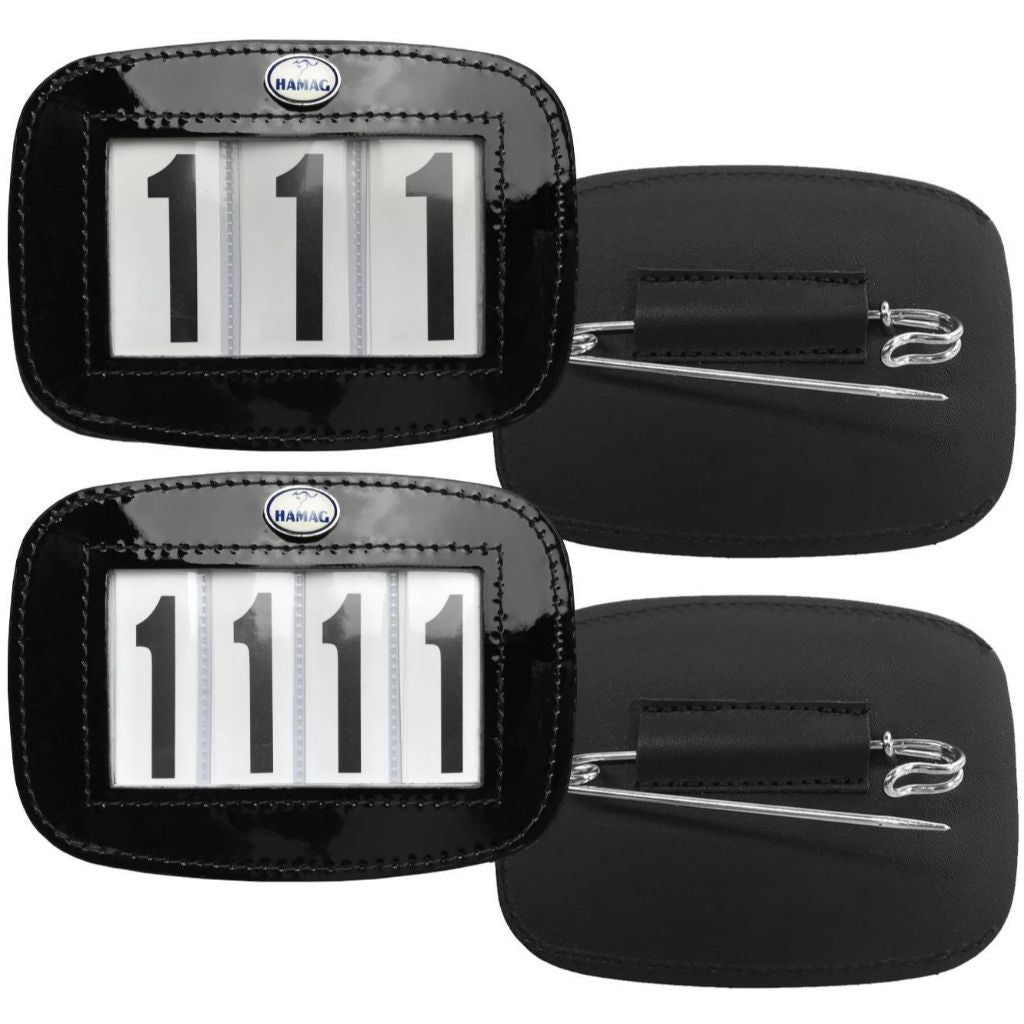 Hamag Patent Leather Crystal Saddle Number Holder Pair of 2 BLACK 4 NUMBER