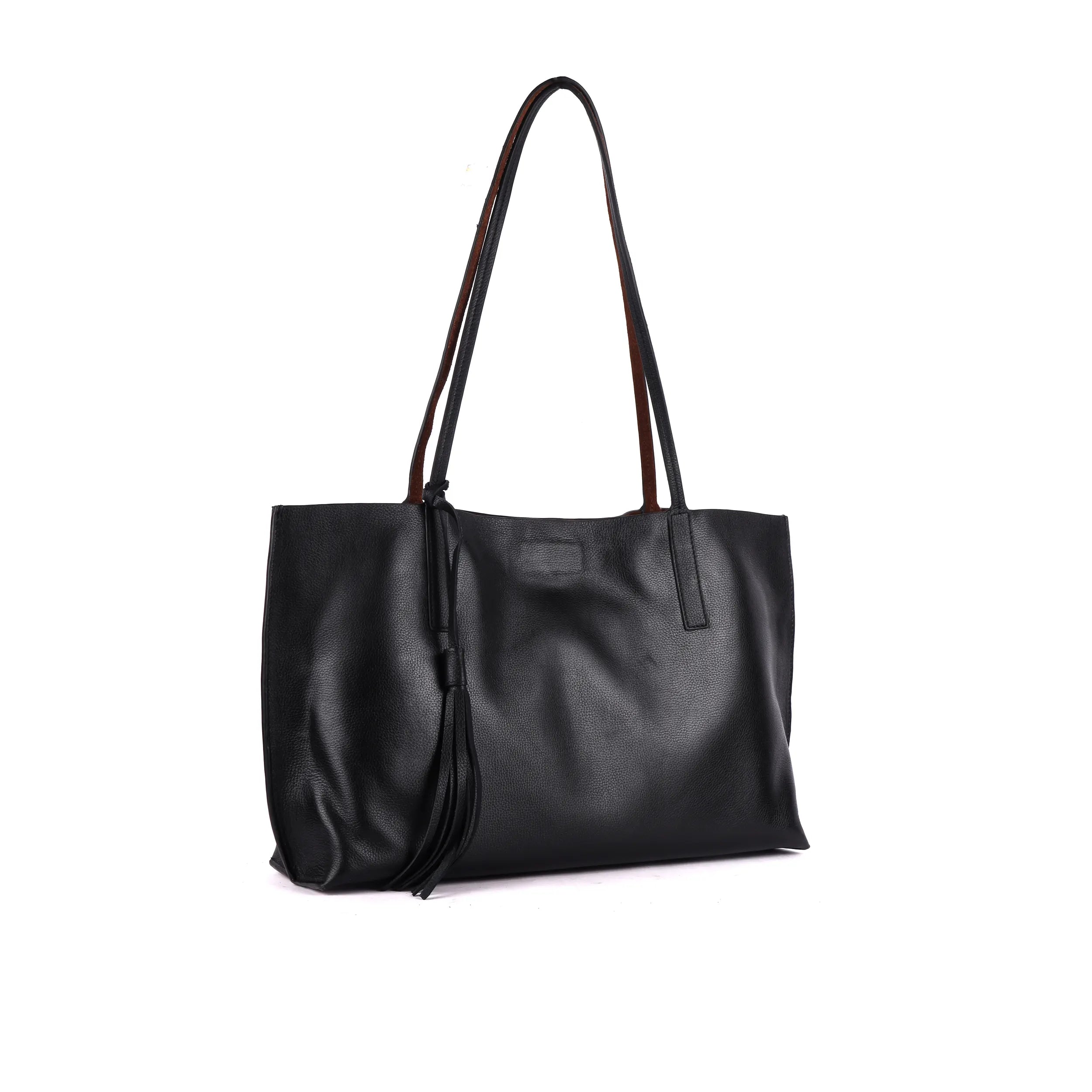 The Oran Leather Havana Tote Bag combines timeless elegance with practical design. Perfect for ladies who appreciate versatility, the black version features a reversible design with smooth black leather on one side and luxurious deep mauve suede on the other. The tan version offers classic single-sided leather. Both styles include a double shoulder strap for comfortable wear, a secure magnetic closure, and an internal zip pocket to keep essentials organized. This tote is designed to effortlessly complement your everyday wardrobe.