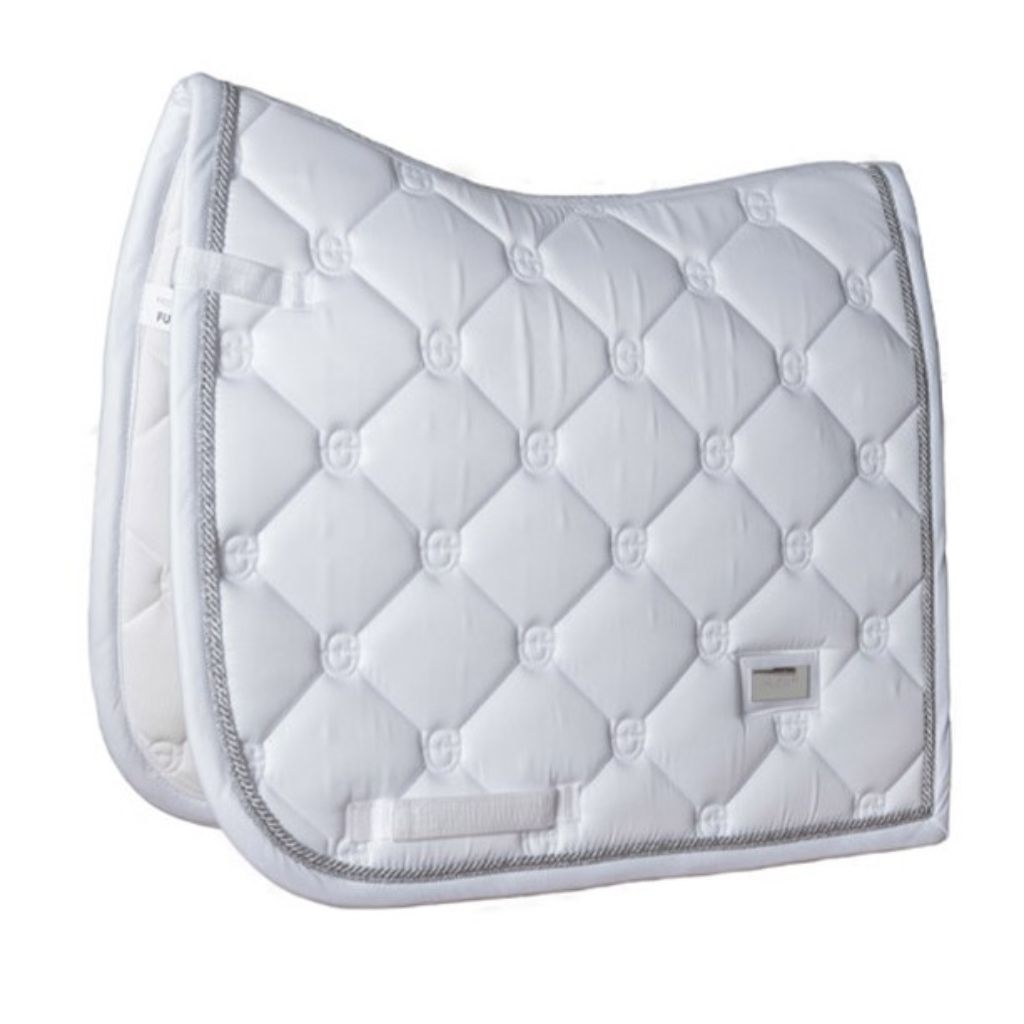 Equestrian Stockholm Dressage Saddle Pad White Perfection Silver Binding