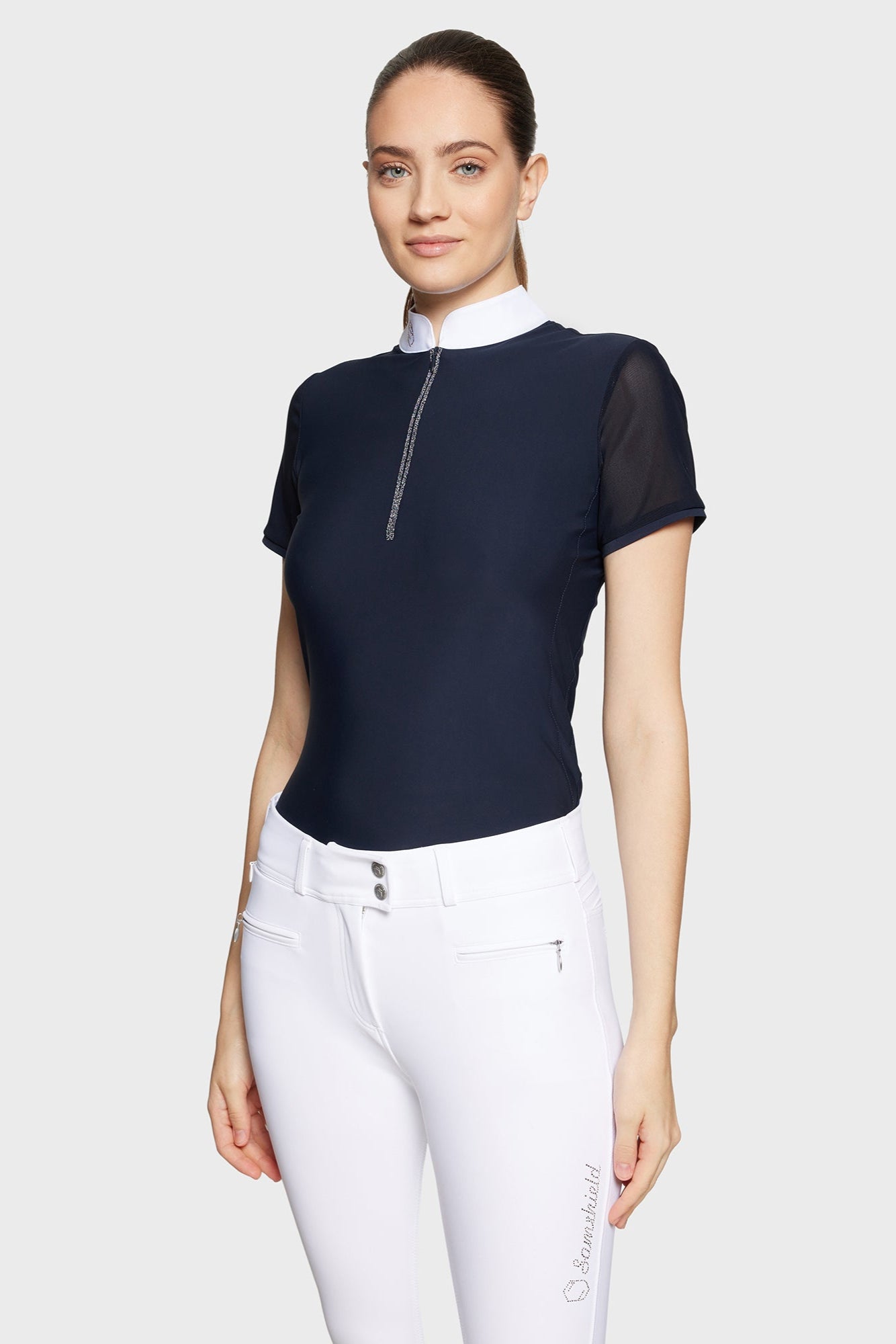 Aliosha women's short-sleeved equestrian competition top. Designed for riders looking for a simple style with crystals.