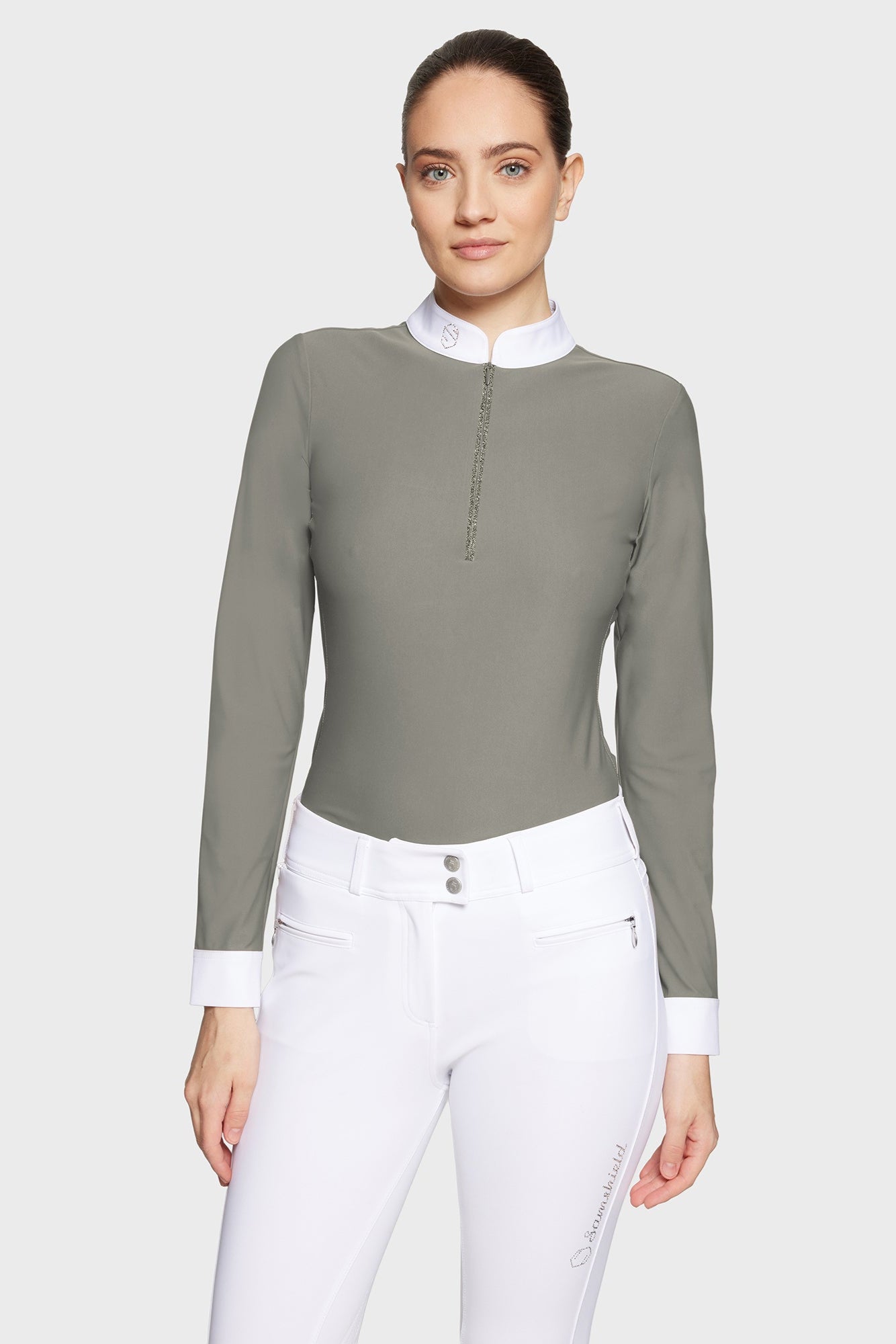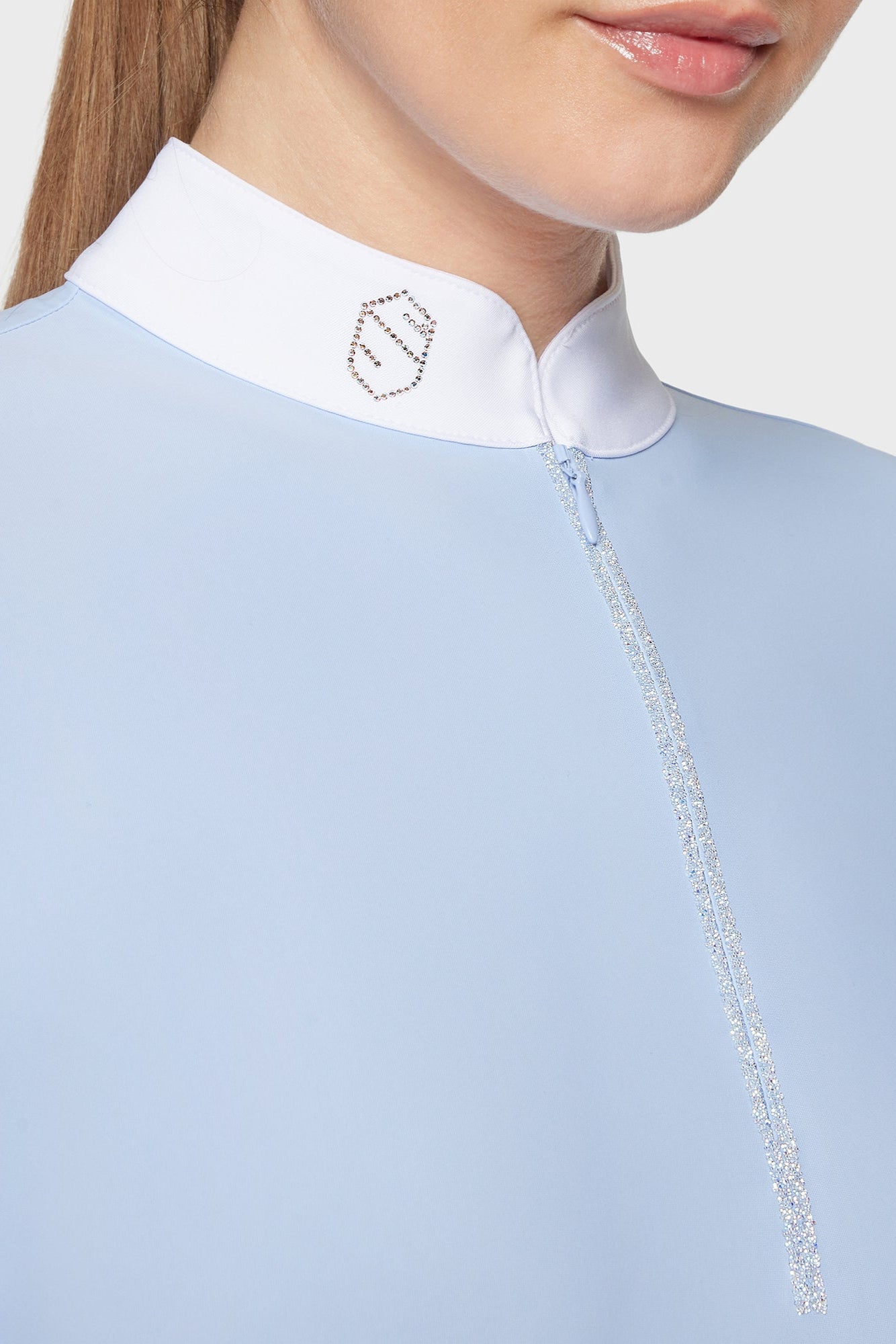 Aloise women's long-sleeved equestrian competition top. Designed for riders looking for a simple, colorful crystal style.