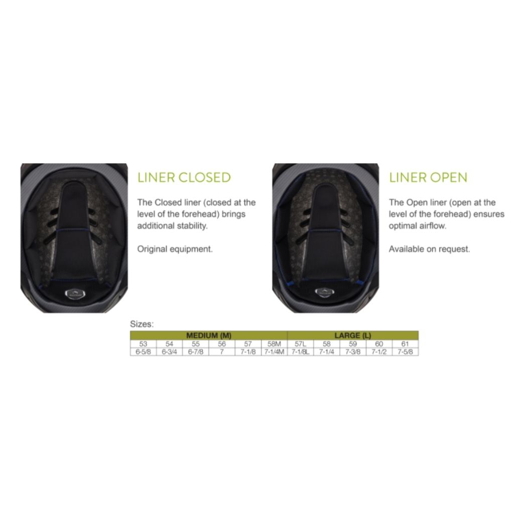 Liner “Open” (open at the level of the forehead): ensures optimal airflow